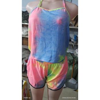 Fashion ladies tie-dye suspenders tight top + shorts set free size-008-R
